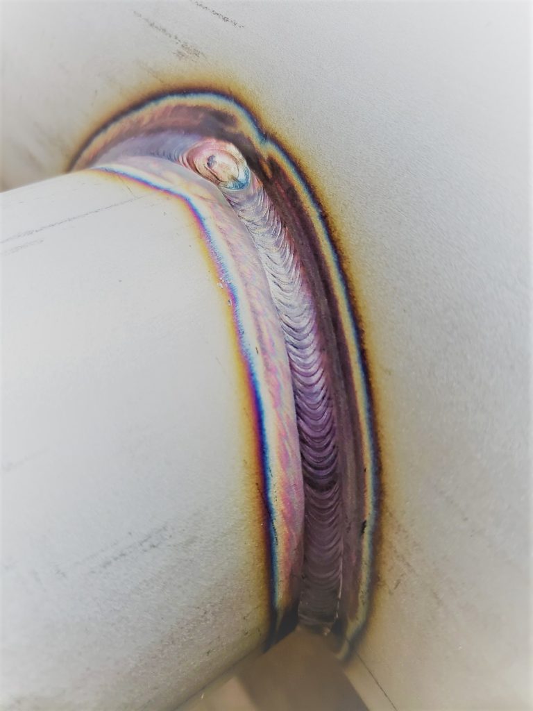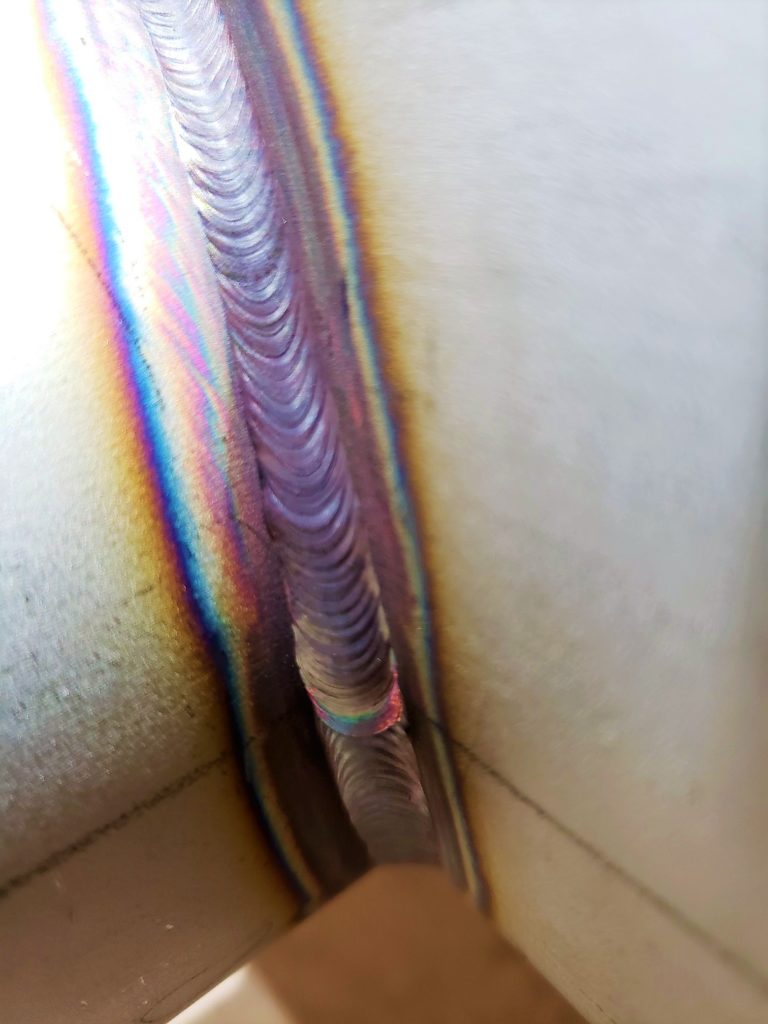 2022年1月25日 / 最終更新日時 : 2023年6月20日 ide-kakouki 製 品 業務なう~200Aヘッダー管/T字管溶接 T字管溶接のビード (200A×100A・200A×40A) #T字管 #ヘッダー管製作 #SUS304 #ステンレス配管 #手溶接 #TIG溶接 #ストリンガービード #溶接ビードきれい #綺麗な溶接