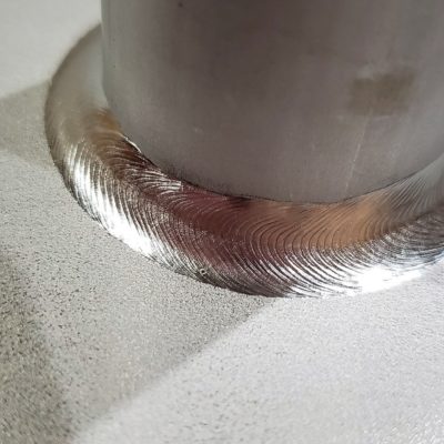 2025年11月18日 ステンレス溶接【90°ベンダーT字管】 ステンレス溶接【90°ベンダーT字管】製作。曲げたパイプに穴をあけ、そこにカットした立ち上がりパイプを組み合わせて作るT字管。展開とすり合わせ、90°を保つ溶接は至難の業。